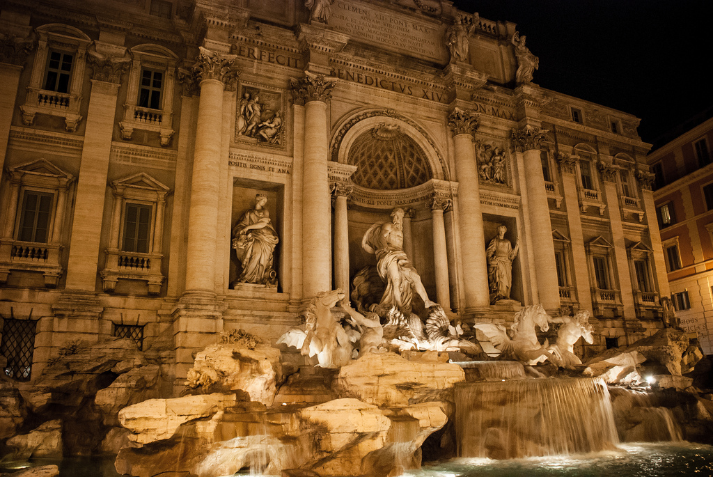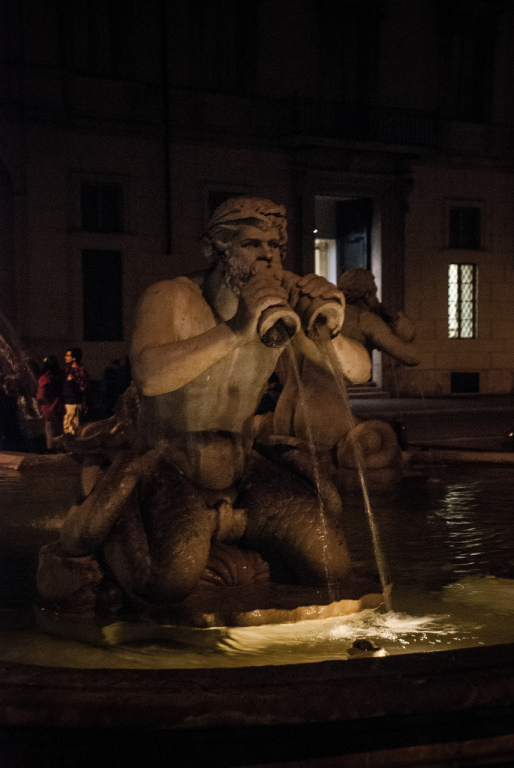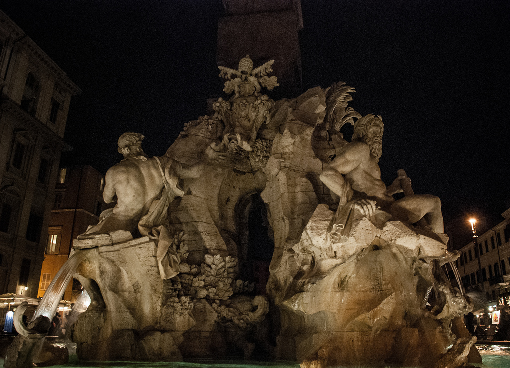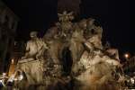 Po napełnieniu żołądków zerknęliśmy na zegarek, potem na mapę i wyruszyliśmy spalić trochę kalorii. Zależało nam, aby pierwszej nocy rozeznać się po okolicy i dostać się jeszcze do największych atrakcji w pobliżu. Minęliśmy Piazza Navona ze słynną fontana dei Quattro Fiumi (Fontanną Czterech Rzek) zbudowaną przez Berniniego...