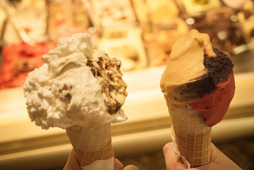 Nie wiem, co takiego ma w sobie to miejsce, ale mimo że byliśmy już po kanapce, momentalnie zachciało nam się najlepszych na świecie, prawdziwie włoskich lodów. Na szczęście nieopodal znajduje się moja ulubiona (podczas trzech dni pobytu zjadłam prawie 30 gałek o różnych smakach!) lodziarnia Gelateria della Palma.