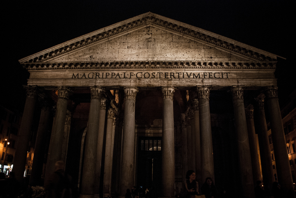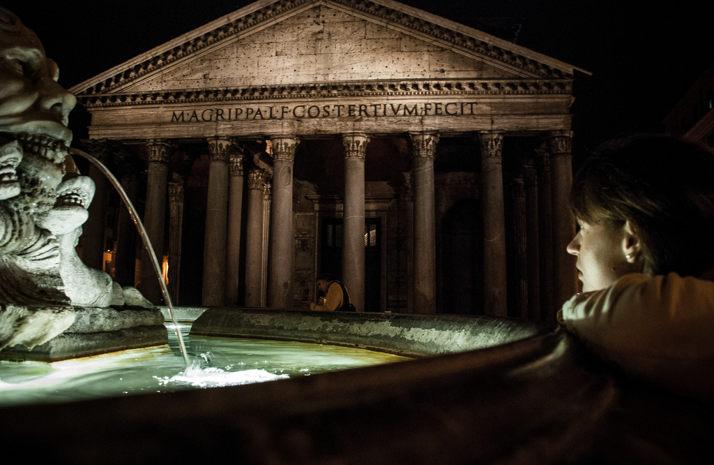 ... aż po kilku zakrętach w boczne uliczki przed nami wyrósł piękny Panteon. Poczuliśmy się jak mieszkańcy starożytnego Rzymu, czekając aż zza rogu wyjdą Rzymianie zmierzający na nocny spoczynek, ubrani w swoje charakterystyczne togi. Na początku budynek pełnił funkcję pogańskiej świątyni, a następnie stał się miejscem religijnego kultu Chrześcijan. Po dziś dzień kopuła Panteonu stanowi jednak tak znaczące osiągnięcie architektoniczne, że stała się wzorem połączenia proporcji i kształtów dla wielu światowych specjalistów.